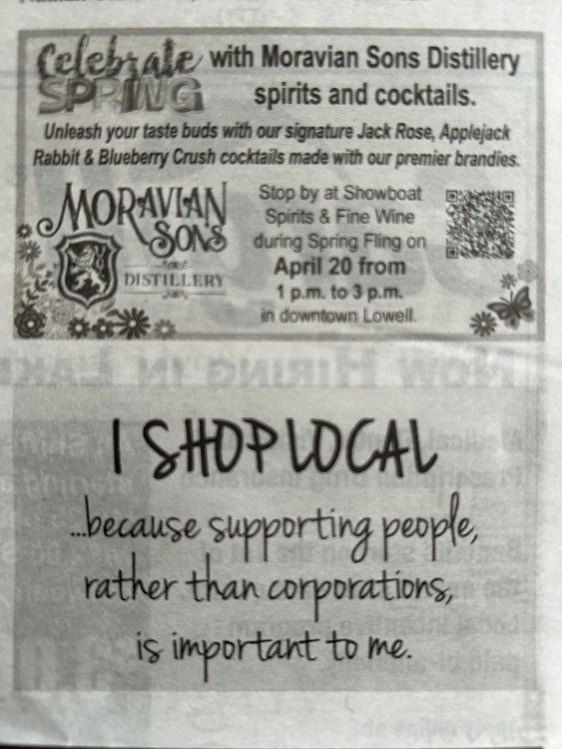 Celebrate spring! Join us for a tasting of Moravian Sons Distillery spirits and cocktails during Spring Fling on April 20 from 1 pm 3 pm at Showboat Spirits and Fine Wines in downtown Lowell. Watch for announcement of tasting at Cannonsburg Bottle Shop.